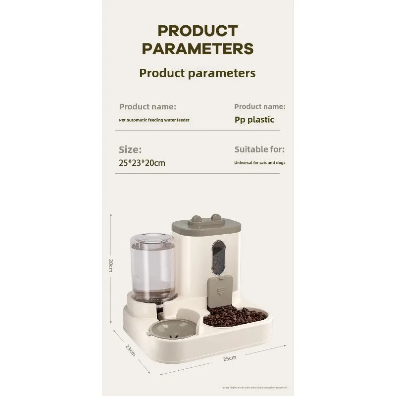 Simplify feeding time with this automatic pet food feeder and water dispenser. Designed for both dogs and cats, it provides a large capacity for food and water. The convenient storage container keeps food fresh and accessible throughout the day. Perfect for busy pet owners, it ensures your pet never goes hungry. Easy-to-use design makes refilling and cleaning simple. The water dispenser provides a constant supply of fresh water alongside meals. Durable materials ensure long-lasting performance for daily use. Ideal for puppies, adult dogs, or cats, making feeding routines stress-free. Lightweight and portable, it can be used at home or during travel. Keep your pets healthy, hydrated, and well-fed with this all-in-one automatic feeder and water dispenser.