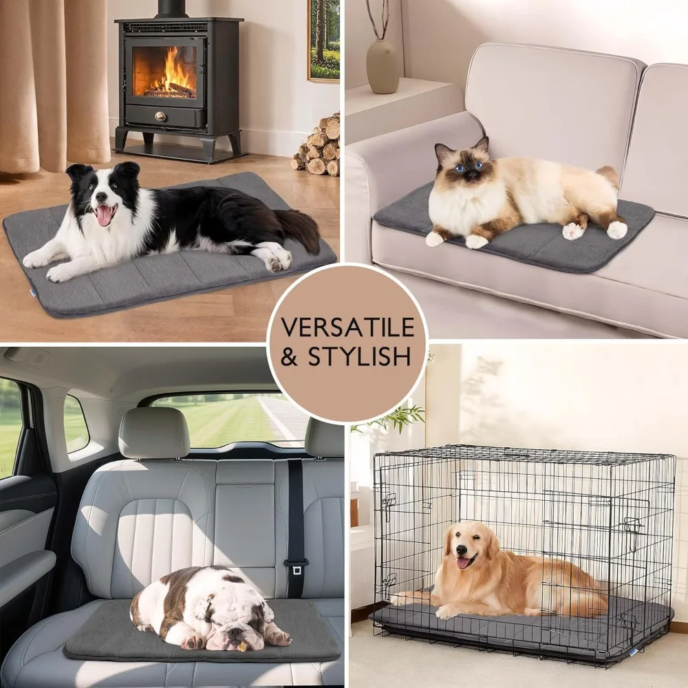 Give your large dog the ultimate comfort with this orthopedic crate pad. Made with high-quality memory foam, it supports joints and reduces pressure points. The soft, warm surface ensures a cozy resting place for your pet. Its non-slip bottom keeps the mat securely in place inside crates or on floors. The removable cover is machine washable, making cleaning quick and easy. Perfect for use in crates, kennels, or as a standalone bed at home. Durable construction provides long-lasting support for dogs of all sizes. The neutral grey color fits seamlessly into any home décor. Ideal for senior dogs, large breeds, or pets needing extra support. Treat your furry friend to comfort, warmth, and restful sleep with this premium dog crate pad.